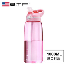 美国BTIF运动水杯健身大容量吸管杯成人孕妇便携塑料杯子旅行 深蓝色-1000ml