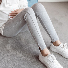 米度丽 孕妇裤子夏季薄款孕妇打底裤外穿春秋大码长裤托腹裤子鲨鱼裤秋装 777-小猫款 浅灰色 L