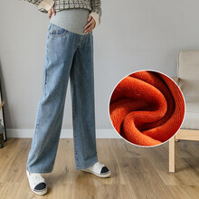 米度丽 孕妇牛仔裤春秋款薄款外穿孕妇裤子秋季宽松直筒阔腿裤秋装 浅蓝 XXL