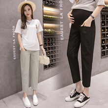 南叮雅格孕妇裤子夏薄款外穿亚麻九分裤托腹潮妈宽松九分阔腿裤休闲孕妇打底裤大码 黑色 XL