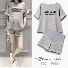 孕妇套装夏装时尚短袖孕妇装纯棉宽松上衣孕妇短裤休闲两件套孕妇裤夏天孕妈装夏季裤子 粉红色两件套 L