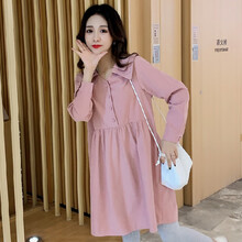 麦士豆孕妇装潮妈时尚秋季裙子套装两件套中长款上衣减龄孕妇连衣裙春秋 粉红+浅灰色打底裤 XL