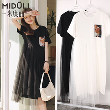 米度丽 孕妇连衣裙夏季长裙夏天裙子中长款t恤裙宽松网红潮妈孕妇装夏装 MOMO 7602 米白色 L码