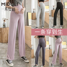 米度丽孕妇裤子夏季外穿潮妈打底裤阔腿裤直筒瑜伽裤春夏薄款九分裤春装 5759 活性黑 L码