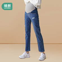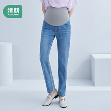 婧麒(JOYNCLEON)孕妇牛仔裤春秋装新款时尚外穿长裤潮妈宽松老爹裤孕妇裤子 浅蓝色 XXL码 Jyk10250