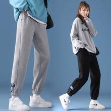 南叮雅格孕妇裤子2021新款运动裤子春秋装卫裤潮妈宽松束脚休闲裤春装 灰色春秋 L