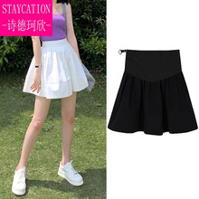 【轻奢高档】孕妇字伞裙夏天百搭外穿潮妈甜美褶皱白色半身裙高腰短裙防走光 白色 自带安全裤 M