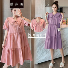 蝶诗璐 孕妇装夏装新款辣妈连衣裙韩版宽松哺乳衣外出时尚裙子春秋夏天孕妈装打底裙 粉红色 2XL
