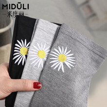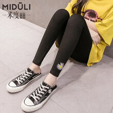 米度丽 孕妇裤子夏季薄款打底裤外穿时尚小雏菊九分裤托腹潮妈孕妇装夏装 5816 深花灰 XL码