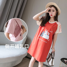 瑞彼丽 孕妇哺乳衣服外出夏装时尚百搭大码宽松潮妈中长款160斤可穿的t恤产后月子母乳期喂奶上衣 杏色【侧边掀开哺乳】 XL