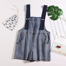 米度丽 孕妇短裤孕妇裤子夏秋薄款外穿牛仔背带裤套装宽松阔腿裤夏装潮妈 背带裤+T恤 M码