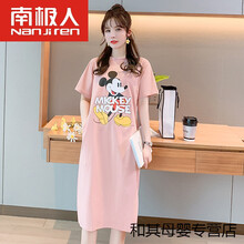 南极人官方旗舰夏新品孕妇裙夏装纯棉米奇过膝长裙2021时尚款潮孕妈连衣裙T恤裙夏季 灰色 XXL