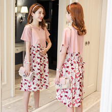 芷玥 孕妇装连衣裙夏季新款宽松纯棉夏装中长款大码时尚拼接圆领短袖孕妇裙子外穿薄款夏天孕妈装 尊贵蓝 XXL