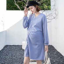 婧麒(JOYNCLEON)孕妇装2020秋装新款孕妇连衣裙中长款时尚修身显瘦遮肚宽松孕妈装衬衫裙子 Jly9267浅绿色 XL
