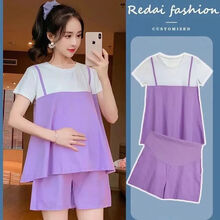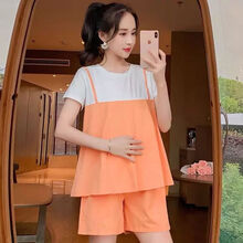 【Evich】网红孕妇装夏装套装外出时尚2021新款韩版夏季休闲运动两件套潮妈 绿色格子套装【版】 M【95-120斤】