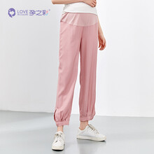 孕之彩孕妇裤春季新款日韩风休闲雪纺裤轻薄垂顺透气束脚九分运动裤孕妈外出开叉小脚裤 浅兰 L