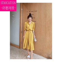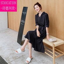 【轻奢高档】孕妇装长裙夏新款潮妈怀孕期气质连衣裙韩版宽松领夏季短袖2021 浅紫色 S