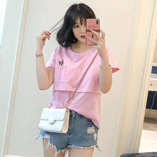木宸 产后哺乳衣上衣外出服春夏季时尚款潮妈短袖喂奶衣宽松大码哺乳期棉质T恤夏装新款 灰色 M(适合90-110斤)