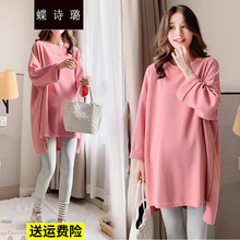 蝶诗璐 孕妇装春装长袖上衣洋气新款时尚款孕妈装宽松孕妇t恤连衣裙春秋内搭打底裙 姜黄色 XL