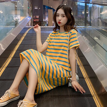 孕妇装夏装外出2019新款孕妇连衣裙中长款时尚潮妈孕妇套装夏季宽松透气孕妇裙子 杏色 XL
