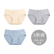 猫人(MiiOW)孕妇内裤低腰抑菌除异味孕早期中期晚期大码孕妈产妇内裤3条装 1901杏色+浅灰+天蓝(纯棉A款) M
