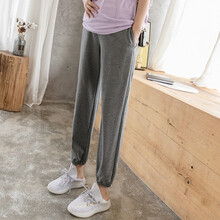 米度丽 孕妇裤子春夏款宽松休闲运动裤外穿时尚打底裤长裤潮妈夏装 5683 浅花灰 M码