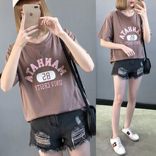 木宸 产后哺乳衣上衣外出服春夏季时尚中长款喂奶衣宽松大码哺乳期短袖T恤夏装潮妈新款 紫粉色 L(适合90-110斤)