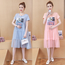 孕妇装夏装时尚潮妈中长款外穿孕妇裙夏季大码网纱孕妈装夏天宽松舒适孕妇连衣裙子新款 粉红色 L