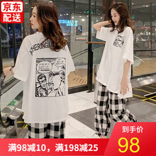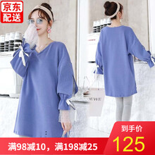 喜孕娇孕妇装秋款秋装套装2020夏季时尚新款洋气毛衣秋装孕妈潮装外出两件套 蓝色上衣+灰色打底裤【XXL码】 新款