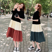 革曼 孕妇装夏装网红洋气夏季撞色短袖孕妇连衣裙纯棉过膝孕妈长裙胖mm200斤夏天裙子潮 砖红色 XL