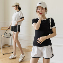 欣柏纶 孕妇装套装夏季夏款孕妇套装孕妇两件套外出外穿宽松大码孕妈装 白色高腰 M