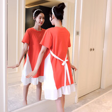 书果 孕妇装连衣裙2021夏装新款宽松透气孕妇上衣时尚休闲短袖孕妈装 粉红色 L