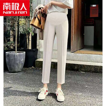 南极人高档轻奢优雅气质孕妇女装新品孕妇裤夏外穿薄款时尚烟管潮妈女九分西装裤打底托腹夏装宽松黑色 黑色裤子 XXL