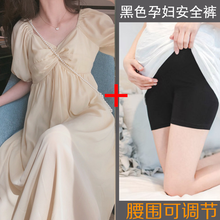 敏潮格伦孕妇夏装上衣2021新款时尚夏天裙子感气质网红套装连衣裙夏季 乳白裙+肤色安全裤 XXL