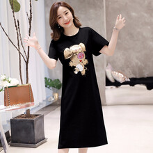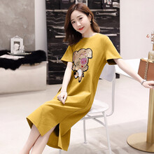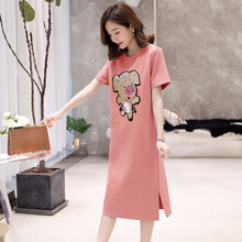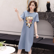 孕妇装夏装潮妈套装2019款外出中长款时尚宽松孕妇连衣裙夏季纯棉上衣 灰色 L
