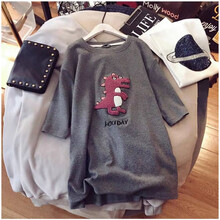 韵暖香 哺乳衣外出夏季母乳衣时尚纯棉t恤潮妈喂奶衣服宽松产后短袖t恤哺乳上衣 蓝色恐龙6938 XXL