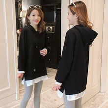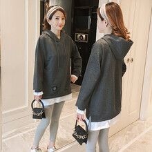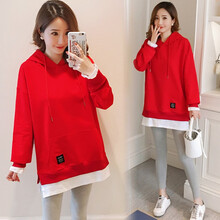 南叮雅格孕妇装秋装套装2021秋季孕妇连帽上衣中长款长袖卫衣打底裤两件套潮妈 单件 红色上衣 XXL 135-165斤