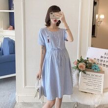 孕妈装夏天外穿宽松孕妇裙时尚孕妇装夏装孕妇套装中长款孕妇连衣裙子 粉红色 M