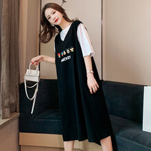 敏潮格伦孕妇夏装纯色棉质上衣夏天连衣裙宽松假两件不显怀遮肚裙子夏季中长款 灰色 XXL