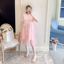 什靓孕妇装连衣裙夏装时尚网纱拼接短袖t恤潮妈孕妇裙子夏季 蓝色 M