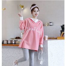 孕妇装秋季套装韩版潮妈假两件连帽卫衣春秋季孕妇打底裤宽松上衣N5 灰色托腹长裤 M【110斤内】