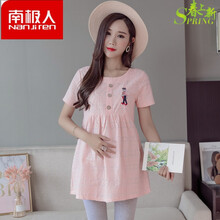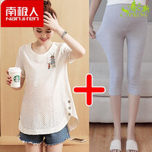 南极人孕妇裤春夏季透气孕妇夏装T恤套装时尚2020新款夏天季纯棉上衣潮妈洋气短袖连衣裙孕妇体恤套装打 3671粉色上衣+七分裤 L