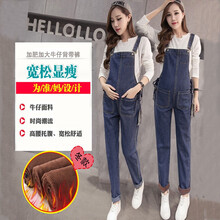 台英华孕妇背带裤牛仔加大码孕妇裤春秋冬季长裤加绒加厚潮妈外穿裤子 蓝色加绒 XL(120-140斤)