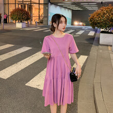 敏潮格伦~孕妇装夏装时尚怀孕期棉夏天裙子中长款孕妇连衣裙潮 黑色裙 L