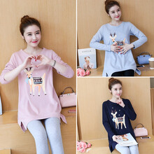 孕妇装秋冬装外出新款孕妇连衣裙中长款时尚潮妈孕妇套装秋冬季宽松透气春秋上衣T恤 浅蓝色 L