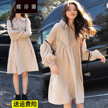 蝶诗璐 孕妇连衣裙春秋装时尚中长款孕妈装衬衫上衣春秋季洋气外出大码长袖裙子 豆沙色 M