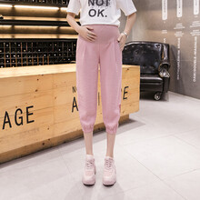 敏潮格伦孕妇裤子女夏季薄款外穿七分裤潮妈休闲运动裤小个子棉麻中裤夏装 黑色 M