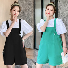 小兀 孕妇装套装夏季夏款孕妇套装孕妇两件套外出外穿背带宽松大码孕妈装 绿色套装 M