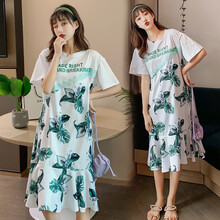 欣柏纶 孕妇装夏装2020新款孕妇连衣裙潮妈时尚短袖鱼尾裙子中长款外出夏装 蓝色 M