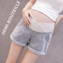 什靓孕妇裤子夏季薄款时尚外穿宽松阔腿牛仔短裤女夏小个子潮妈夏装 蓝色高腰【386】 2XL